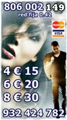 806002149 y 806131072 red fija 0.42 y red móvil 0.79 grandes ofertas de visa 932424782 / 918380034 y 932933512 por 4€ 15 -6€ 20 -10€ 40 m – 15 € 55 – 20 € 90 minutos tarot, sol naciente la experiencia y profesionalidad en el tarot a tu alcance por un precio mínimo, pide referencias somos legales en todo españa sólo mayores de 18 años. servicio prestado. G.AL apartado de correos 164 (46002) valencia