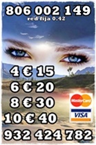 806002149 y 806131072 red fija 0.42 y red móvil 0.79 grandes ofertas de visa 932424782 / 918380034 y 932933512 por 4€ 15 -6€ 20 -10€ 40 m – 15 € 55 – 20 € 90 minutos todas tus preguntas no dudes en consultarme, siempre tendrás una respuesta a te el poder de mi videncia, las gemas, las runas y diversos tarots y oráculos que me ayudaran visualizar todo lo que te preocupa y darle solución precisa……. te esperamos las 24 horas del día. sólo mayores de 18 años. servicio prestado. G.A.L. apartado de correos 164 (46002) valencia