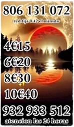806002149 y 806131072 red fija 0.42 y red móvil 0.79 grandes ofertas de visa 932424782 / 918380034 y 932933512 por 4€ 15 -6€ 20 -10€ 40 m – 15 € 55 – 20 € 90 minutos todas tus preguntas no dudes en consultarme, siempre tendrás una respuesta a te el poder de mi videncia, las gemas, las runas y diversos tarots y oráculos que me ayudaran visualizar todo lo que te preocupa y darle solución precisa……. te esperamos las 24 horas del día. sólo mayores de 18 años. servicio prestado. G.A.L. apartado de correos 164 (46002) valencia